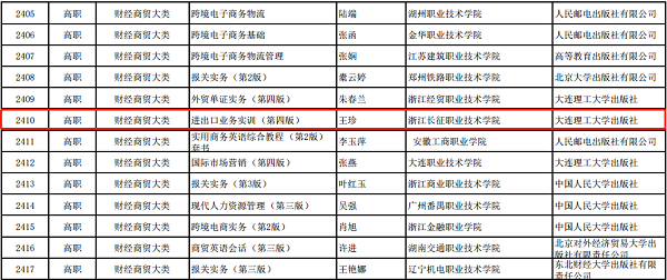 12月18日,教育部公布了“十三五”职业教育国家规划教材书目,我校贸易系王珍主编的《进出口业务实训》(第四版)成功入选。