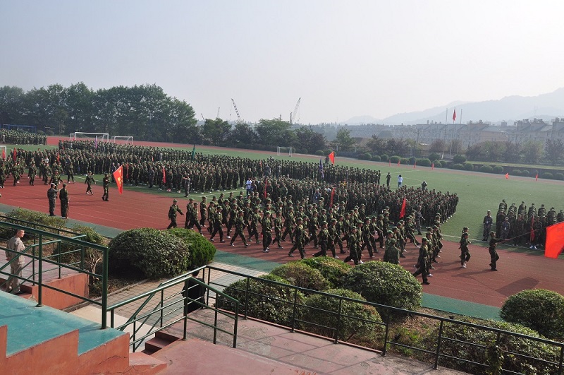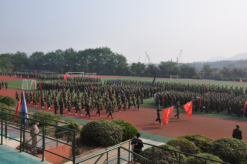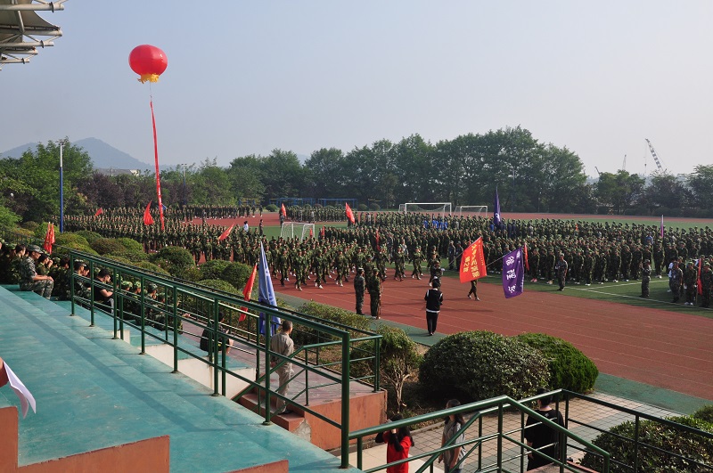 DSC_0256在阅兵式中,各个班级精神十足,铿锵有力的步伐,矫健的身姿,嘹亮的口号,整齐的走过主席台,展现出年青一代的英姿飒爽,也展现出长征精神的全新风貌。经历半个月的严格训练,让学生们练就一身阳刚之气,褪去以前稚嫩的一面。在接下来女子匕首操,军体拳和教官们的演出过程中,师生们亲眼目睹了我们的新生,个个精神饱满,动作一气呵成,真是精彩绝伦。