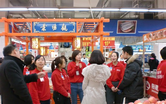 目前所有参与实习的同学的岗位主要分布在鲜食、食品部、前台、非食品部四个部门。在现场,同学见到我们的到来都聚过来与我们攀谈起来,同学们大多肯定了实习过程中的收获。我们则向同学们介绍,在沃尔玛能学到的东西会很多,比如一款商品畅销的原因有哪些?商品陈列区域的布置有什么讲究?不同季节的商品什么时间上架、下架最好?超市内的各种促销活动是如何开展的、效果如何?超市内的商品仓储、搬运是如何运作的?这些内容虽然普通,但是却是成就一个成功企业的基石。我们也再次说明,实习这不仅有利于同学们将在校所学知识应用于实践,更是锻炼同学们职业意识、提高综合素质及职业竞争力的重要过程。针对我们的讲解,同学们都感到大受鼓舞,部分同学主动表示将在这里安心实习,从点滴做起、不断提高综合素质。