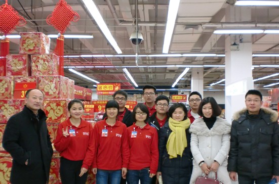 商务系刘永等老师与在沃尔玛顶岗实习同学合影