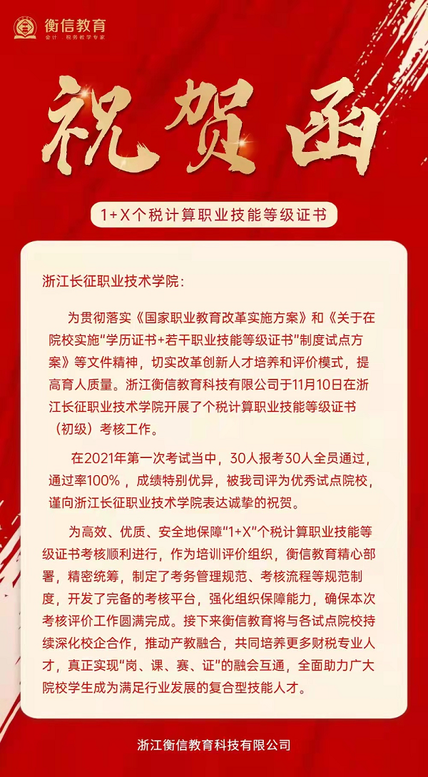 个税计算职业等级证书是教育部认定的“1+X”试点证书之一,我校于2020年被列为该证书的试点单位,本次1+X个税师职业技能等级证书(初级)的培训与考核,由教育部认证的第三方机构——浙江衡信教育科技股份公司与我校共同负责实施。在备考期间,指导老师丁慧琼、陈芳、甄国玲、张秋莉、朱驰敏、程国丽等人,充分利用晚自修和周末时间,带领同学们勤学苦练,使同学们从最初的面对题目无从下手的考证新人,进阶为看见题目眼手齐动反应迅速的税务达人,在学、练、考中真正做到了理论和实践的融会贯通。