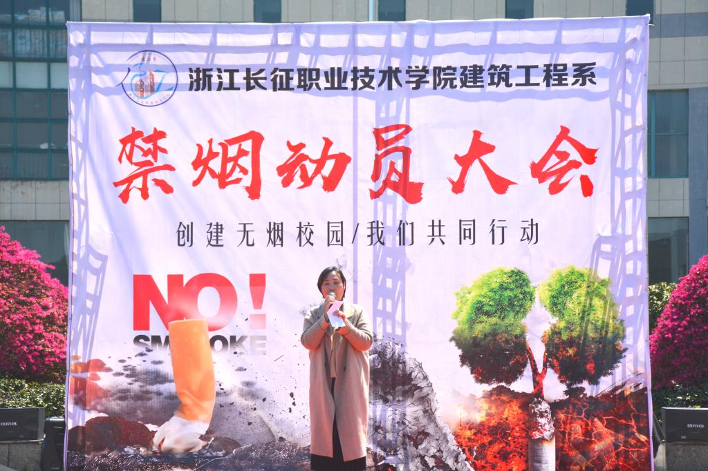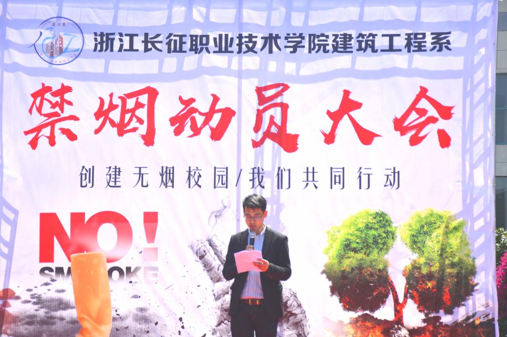 为推进无烟校园创建工作,提高全校师生的健康理念,保护广大师生的身心健康,积极营造教书育人和学习生活的清新怡人环境,建筑工程系于2019年4月1日中午12时40分在校图书馆前召开了“创建无烟校园,我们共同行动”禁烟动员大会。学校学工部部长樊丽庆、建筑工程系副主任高荆民、建筑工程系党总支副书记章剑飞、建筑工工程系学工办副主任余泓以及全系教师、团学全体学生干部、各班班委参加了大会。