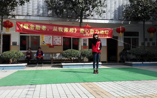 经过将近两小时的车程,应用语言系的志愿者们终于到达了目的地。节目彩排、音响调配、与工作人员协调现场安排等等,一切都在有条不紊的进行着。在明媚的阳光中,在志愿者的忙碌中节目正式拉开了序幕。首先是由苏曦冉同学和郑孜宇同学为大家带来的诗歌朗诵。伴随着感人的背景音乐,一个个真诚而有分量的字眼浮现在大家面前。“孩子所以请你紧紧地握着我的手,陪着我,慢慢地,就像当年一样,我带着你一步一步地走。”这首诗朗诵让现场的志愿者们感受到,人要心存感恩,有时候我们需要花更多的时间和耐心去陪伴我们所爱的人。紧接着是由沈秀男同学和孙佳欣同学为老人们带来的独具特色的双人舞《掀起你的盖头来》,欢快的音乐、动人的舞姿一下子将现场的气氛调动到了最高潮,老人们脸上纷纷露出了笑容。美好的时光总是显得特别的短暂,最后一个节目是由15商英1班的胡静芝同学带来的独唱《我只在乎你》,在扣人心弦的旋律中,她为大家娓娓道来的是“任时光匆匆流去,我只在乎你。”无论岁月在你们身上留下了怎样的痕迹,我们对你们的爱是永远不会被时间所磨灭的。