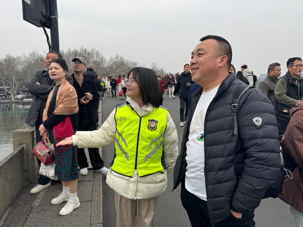 此次活动,彰显了我校管理学院学生的服务意识和社会责任感,同时也为游客们带来了更好的游览体验。他们以无私的奉献精神,守护着西湖的宁静与和谐,传递着关爱、互助、奉献的价值观,让更多的人感受到社会的温暖。