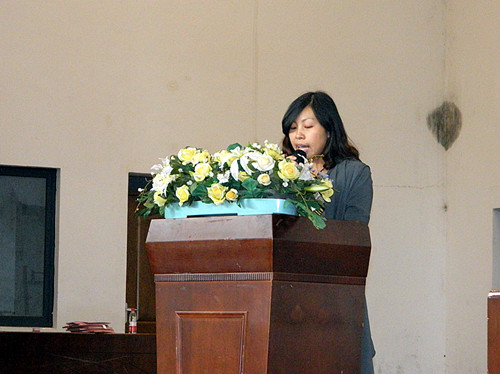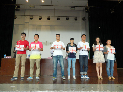 根据大会议程对2011年团学工作进行了表彰。团委副书记林菁菁宣读了《关于表彰2011年度优秀共青团先进集体和个人的决定》,颁布了“五四”红旗团总支、先进团总支、“五四”红旗团支部等奖项。“五四”红旗团总支获奖系管理系李晓梅老师上台发表感言。