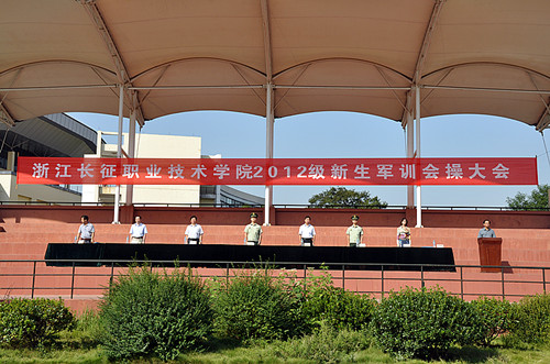在会操大会中副院长杜宝山宣读文件表彰了2012级学生军训中表现优异的10个“先进集体”、131名“优秀学员”及69个“优秀寝室”。随后,2012级新生代表为承训部队教官赠送鲜花,军训会操大会在《中国人民解放军进行曲》中圆满落幕。